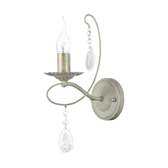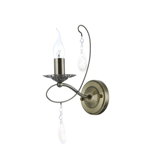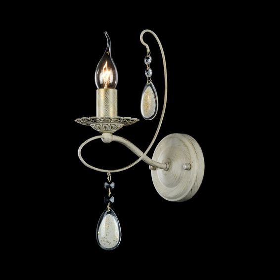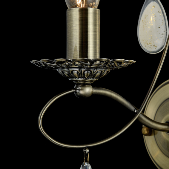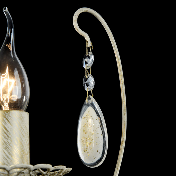 Хрустальные подвески сделаны в виде капель и украшены вкраплениями золотых блесток. Для светильников этой серии рекомендуем использовать лампочки «свеча на ветру».