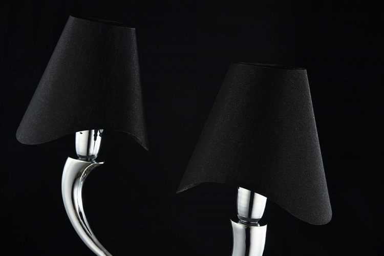 Арматура из металла. Абажур из ПВХ покрыт черной тканью.