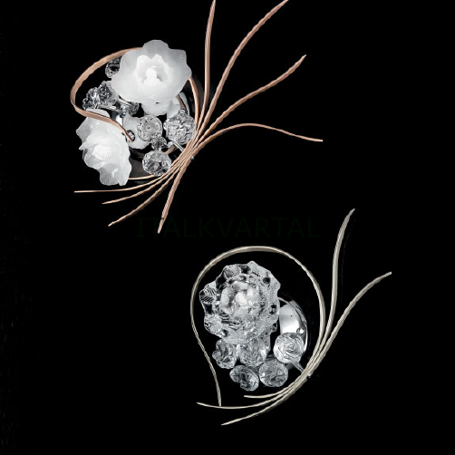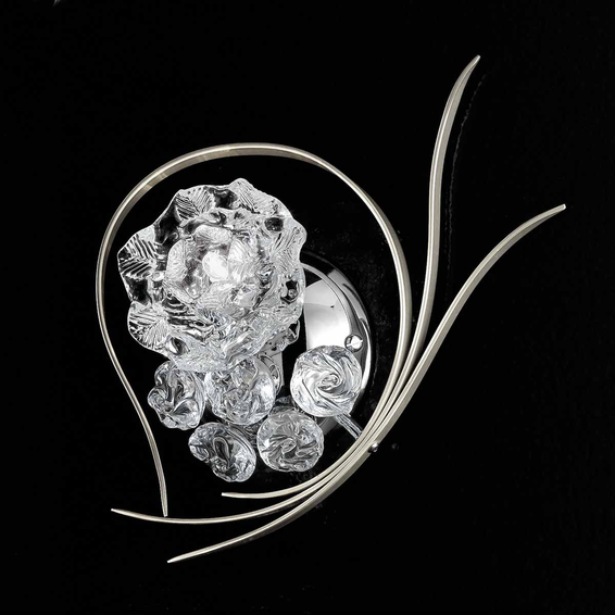 Арматура светильника сделана из металла,цвет хром + бронза/платина. Розы из муранского стекла большого размера:прозрачные или матовые. Стеклянные розы маленького размера- прозрачные.