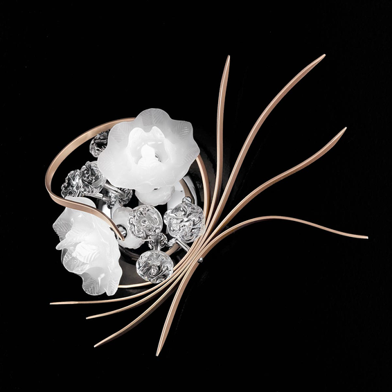 Арматура светильника сделана из металла,цвет хром + бронза/платина. Розы из муранского стекла большого размера:прозрачные или матовые.