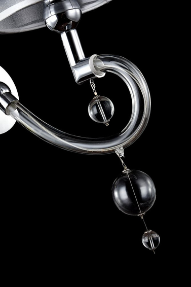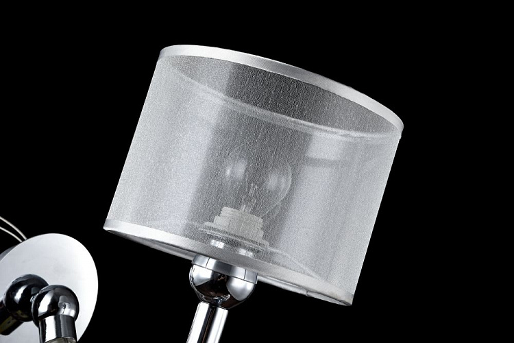Арматура из металла. Возможность различной развески стеклянных шаров. Абажуры из полупрозрачной белой ткани.