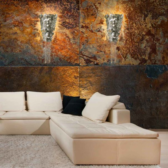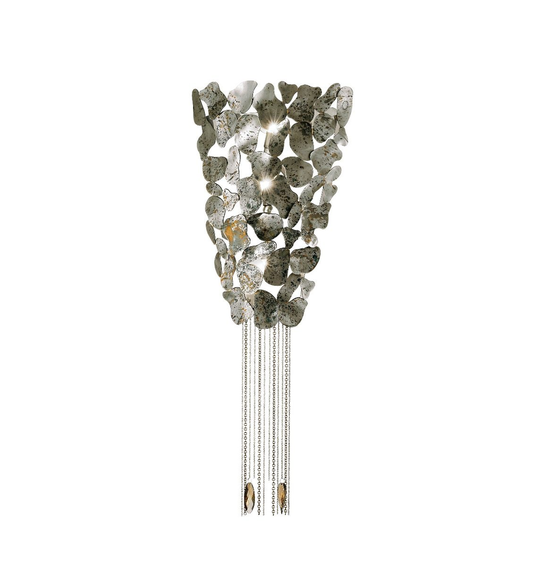 "Арматура светильника сделана из металла. Доступна в разных цветах.- кортен серебристый с хромированными цепями - кортен коричневый с цепочками из светлого золота. Декоративные элементы из хрусталя Swarovski."