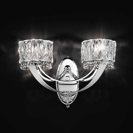 Каркас изготовлен из металла, плафоны из муранского стекла, с декоративными элементами Swarowski Crystals. Доступен в хромированном и золотистом цветах и в цвете чеерный баклажан.