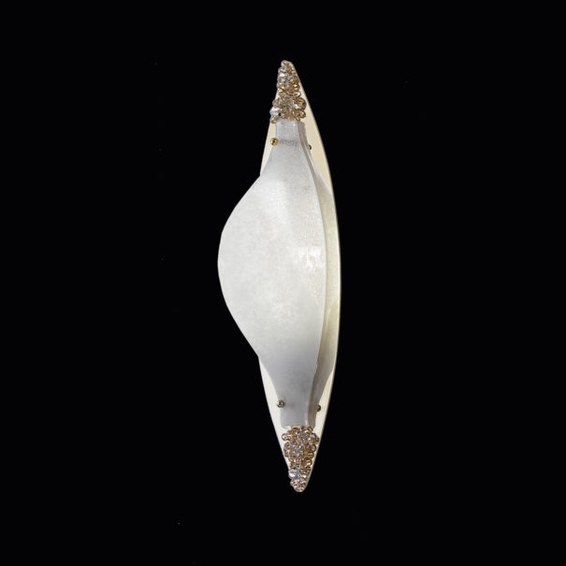 Каркас изготовлен из металла, окрашенного в цвет золота, плафоны из белого муранского стекла, с декоративными элементами из кристаллов Swarovski.
