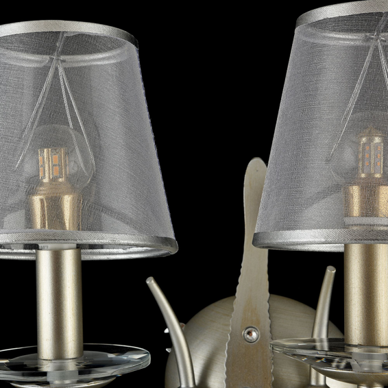 Благодаря полупрозрачным абажурам из органзы и затейливо изогнутой арматуре серебристо-коричневого цвета светильники смотрятся воздушными и невесомыми.