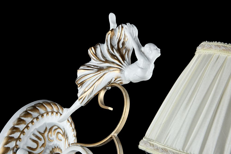 Арматура из металла. Декоративные элементы в виде балерин из полирезина и лент. Подвески из *хрусталя. Модель представлена в 2-х цветах. Цвет Белый с серебром - Артикул ARM222-01-N