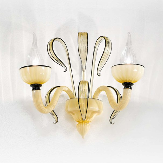 Каркас изготовлен из муранского стекла, плафоны из стекла Pyrex. Допустим в двух цветовых решениях - белый и цвет шампанского с черными профилями.