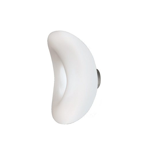 Каркас из хромированного металла, в некоторых деталях с полированными деталями из никеля. Атласное белое выдувное муранское стекло