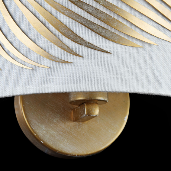 Арматура из металла. Абажур из ПВХ покрыт тканью, украшен декоративным металлическим элементом в виде листа папоротника.