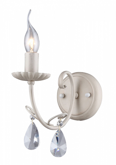 Корпус выполнен из металла, лампочка имитирующая свечу. Основание декорированно хрустальными подвесками.