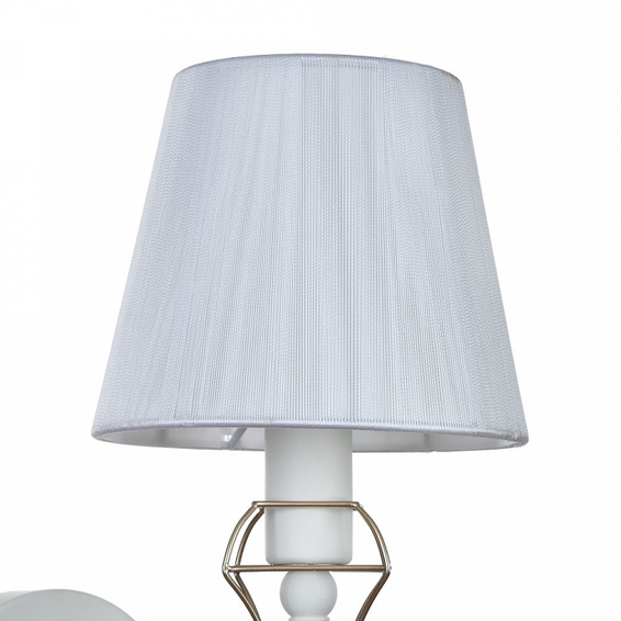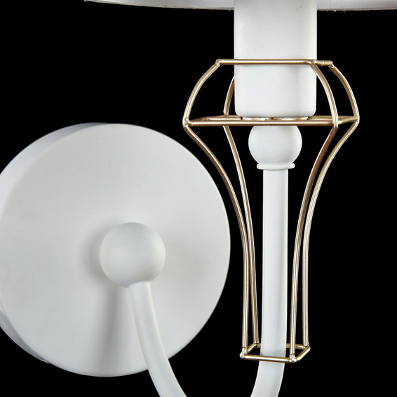 Арматура из металла. Декоративный каркас из золотой проволоки. Абажур из ПВХ покрыт тканью (нейлон) белого цвета.