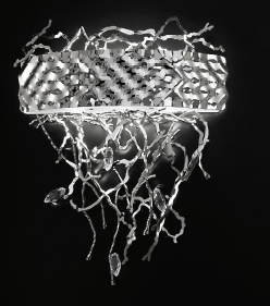 Каркас изготовлен из металла, декоративные элементы и подвески из кристаллов Swarovski. Доступен в следующих цветовых сочетаниях: белый матовый и светлое золото или сталь; черный матовый и светлое золото или сталь; черная фольга и светдлое золото или сталь; светлое золото; сталь.