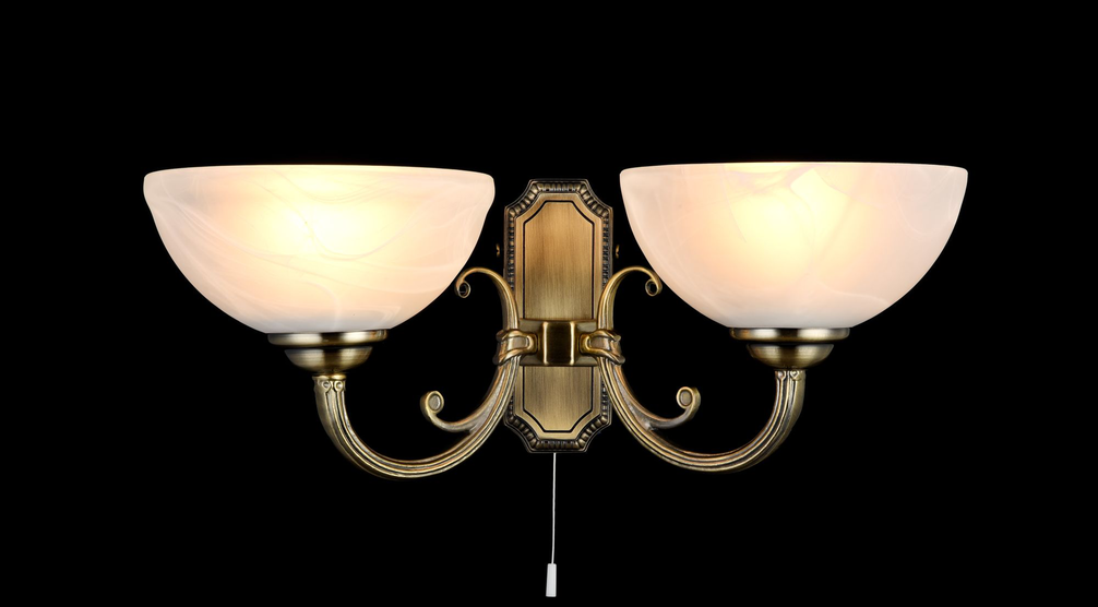 Бронзовая арматура изделий прекрасно сочетается с плафонами из матового стекла.