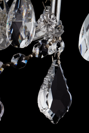Арматура из стекла. Рожки выполнены из *хрусталя с нанесением алмазных граней. Подвески из *хрусталя различных огранок.