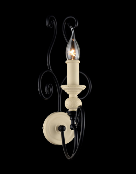 Арматура из металла. Декоративные элементы из полирезина. Абажур из ПВХ покрыт тканью белого цвета.Модель представлена в 2-х цветах. Цвет Чёрный - Артикул H631-WL-01-B