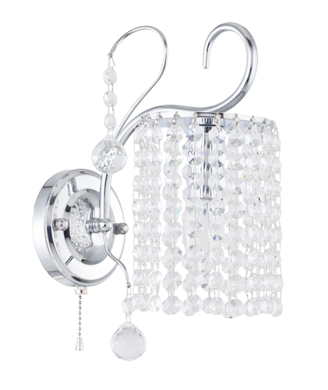 Арматура сделана из металла и доступна в двух цветах: золото и хром. Рожки выгнуты вручную и украшены декоративными подвесками. Основание светильников дополнено подвеской в виде шара. Модель представлена в 2-х цветах. Хром (Артикул FR1127-WL-01-CH)