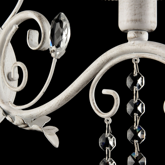 Благодаря уникальному цвету, белому с серым патинированием, и подвескам, светильники словно парят в воздухе и выглядят легкими и невесомыми.