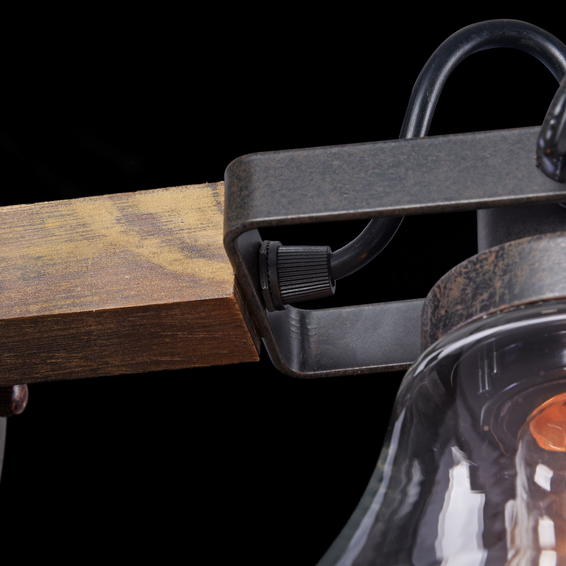 Арматура изделий серии выполнена из металла и дерева, плафоны из прозрачного стекла.