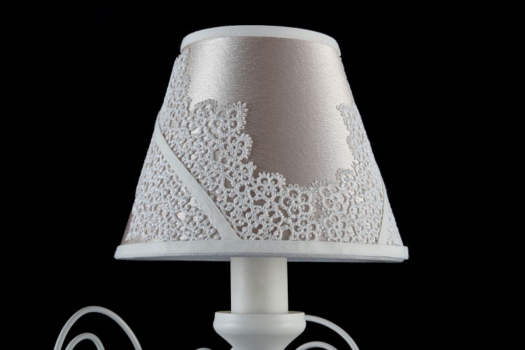 Арматура из металла. Абажур из ПВХ покрыт атласом и украшен кружевом. Подвески в виде бусин из стекла.