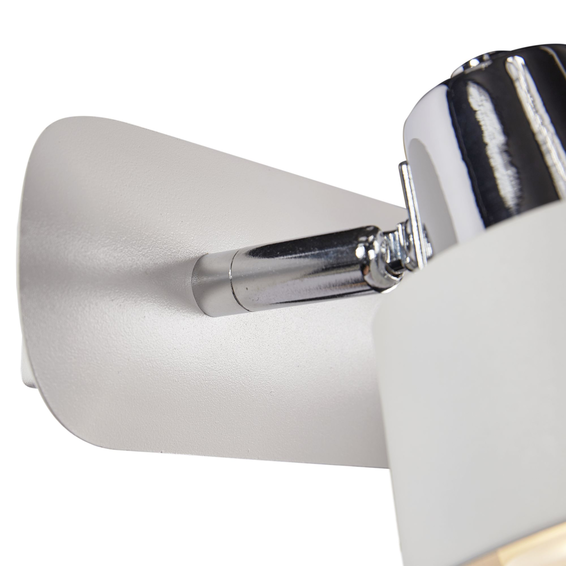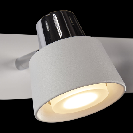 Изделия выполнены в белом матовом цвете, арматура — из металла. Отличительная черта светильников — специальный механизм, который позволяет поворачивать плафоны на 90 градусов по вертикальной оси и на 180 градусов по горизонтальной.
