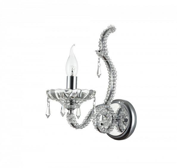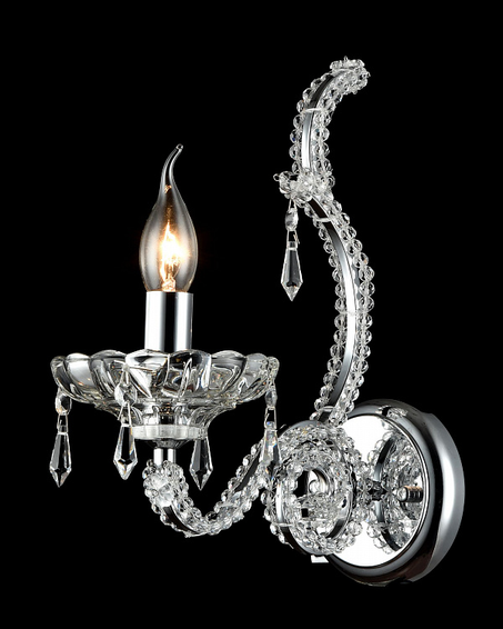 Арматура из металла с хромовым покрытием украшена *хрустальными бусинами. Центральная часть светильника украшена *хрустальным «пиком».
