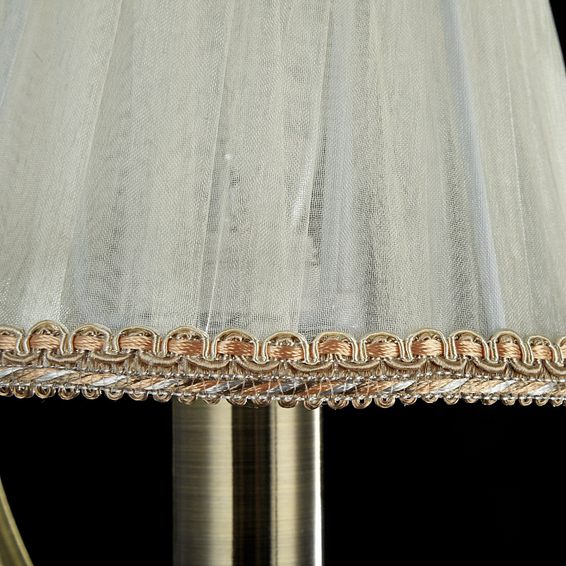 Арматура из металла. Абажуры из плиссированной органзы с тесьмой.