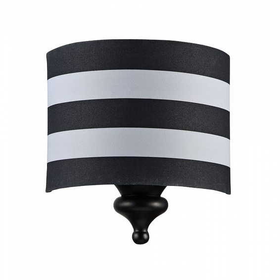 Арматура из металла. Двухцветный (белый и чёрный) абажур из ПВХ покрыт тканью.