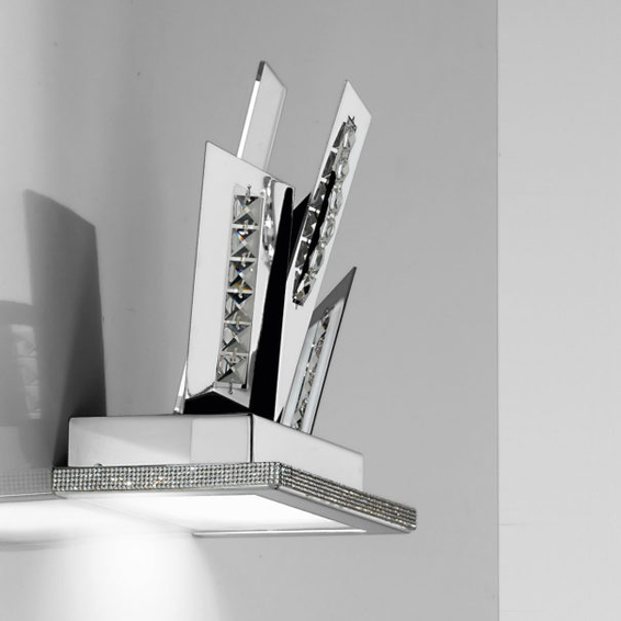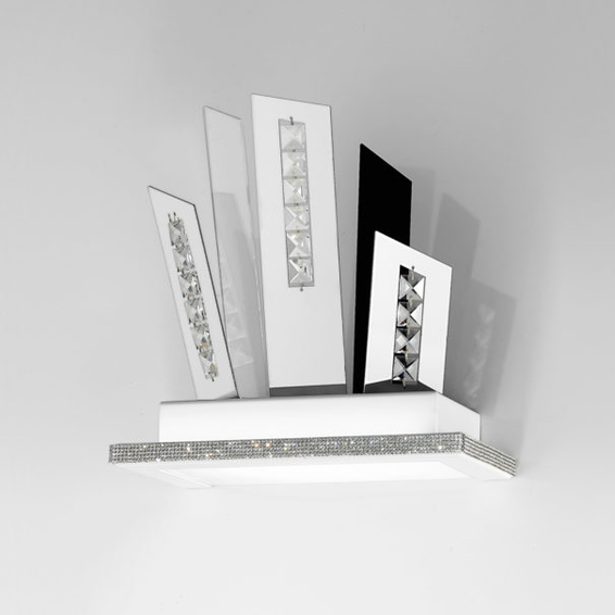 Каркас изготовлен из металла, декоративные элементы - кристаллы Сваровски. Рассеиватель - из сатинированного стекла. Доступен в отделке хром или белый глянцевый.