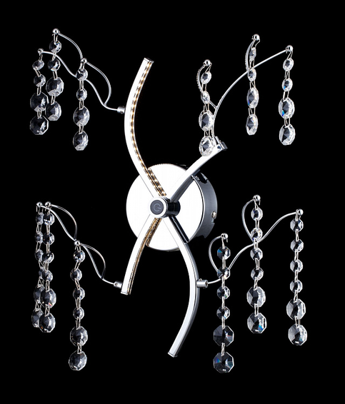 Каркас из металла с хромовым покрытием. Ультрасовременный дизайн с использованием LED модуля. Подвески из *хрусталя.