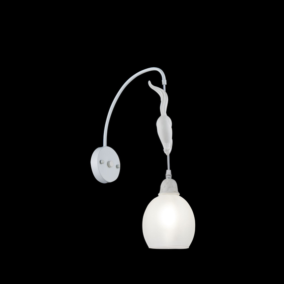 Арматура сделана из металла, окрашенного в белый цвет, фигурки белок выполнены из керамики, плафоны из белого матового стекла.