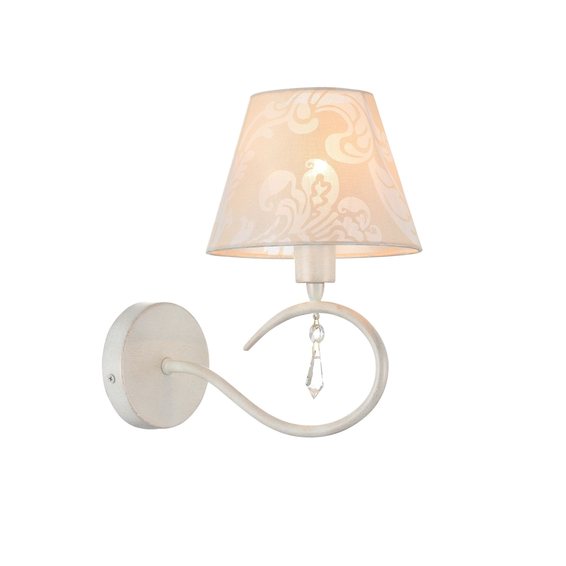 Арматура из металла. Абажур из ПВХ покрыт хлопком. Подвески из *хрусталя.