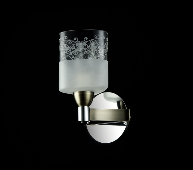 Арматура из металла бронзового цвета. Плафоны сделаны из двух видов стекла: из прозрачного и матового, с пескоструйным рисунком.