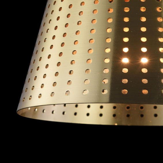 Арматура из металла, декоративный плафон из перфорированного металла с черными декоративными элементами.