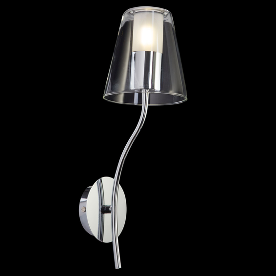 Арматура сделана из металла цвета хрома. Плафоны в форме конусов выполнены из стекла, причем внутренняя часть - матовая, а внешняя - прозрачная.