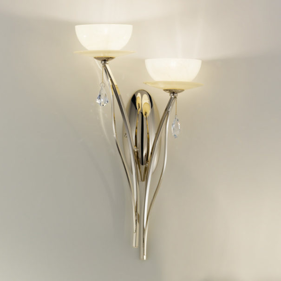 Каркас изготовлен из металла, декоративные элементы Swarovski Crystals. Плафоны из муранского стекла. Доступен с плафонами из муранского стекла белого цвета и цвета шампань.