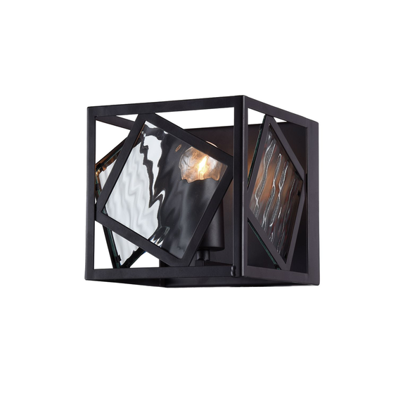 Арматура из металла черного цвета, вставки из стекла с эффектом струящейся воды.