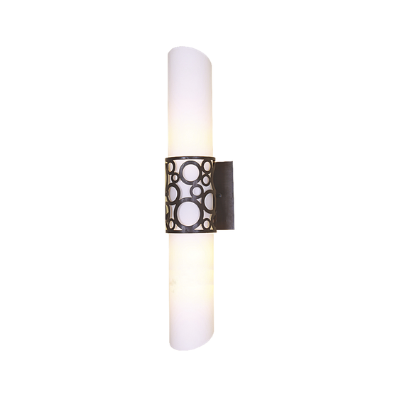 Каркас сделан из металла и окрашен в коричневый цвет, настенный светильник с стеклянным плафоном.