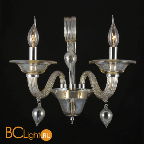 Каркас изготовлен из стекла и металла в хромированном цвете, плафоны выполнены из стекла полупрозрачного коньячного цвета. Доступен со стеклом дымчатого цвета - CAETANO AP2 SMOKE 1291/402 и в металле в цвете золота со стеклом янтарного цвета - CAETANO AP2 AMBER 1292/402 .