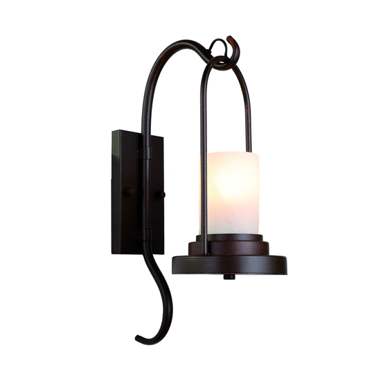 Каркас светильника из металла,окрашенный в устаренный кофейный цвет, стеклянный плафон в виде свечи.