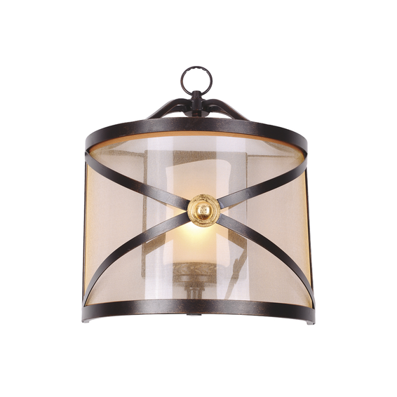 Арматура и крепежные элементы сделаны из металла. Стеклянный плафон-труба запакован в железную броню тёмно-коричневого оттенка.