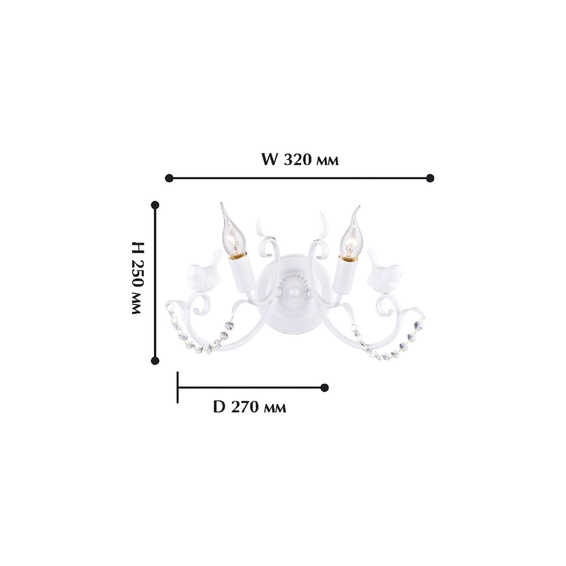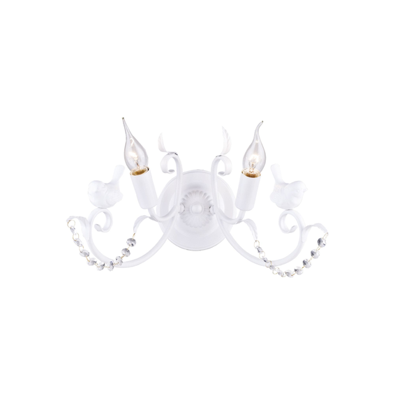 Каркас из металла, окрашенного в белый матовый цвет, декоративные птички из гипса, подвески из хрусталя высшего качества.