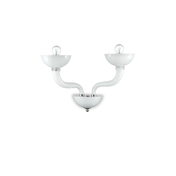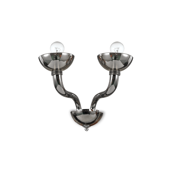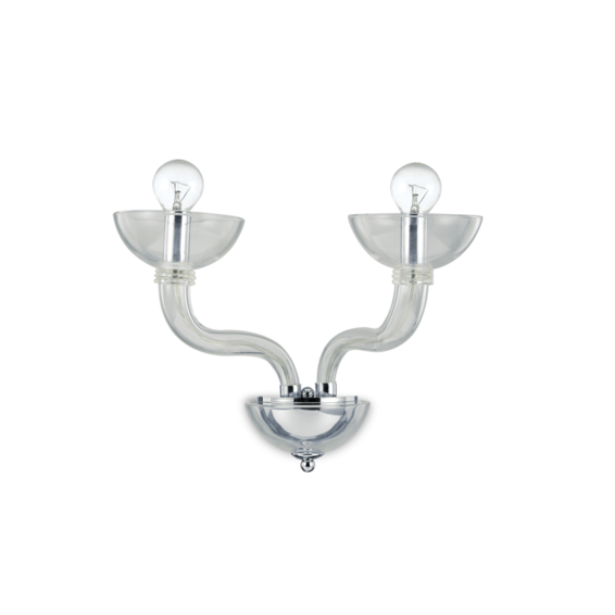 Арматура и детали из хромированного металла. Рожки из прозрачного дутого стекла или серого с серым цветом внутри или цвета слоновой кости.