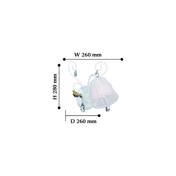 Арматура из металла,окрашена в белый цвет с золочением декоративных элементов. Светильники декорированы тканевыми абажурами из белой органзы.