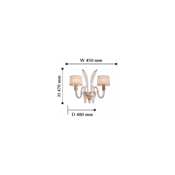 Каркас светиника из металла, покрыт гальваникой золотого цвета, стеклянные выдувные элементы цвета шампанского, абажуры из бежевой органзы с декоративной тесемочкой.