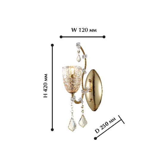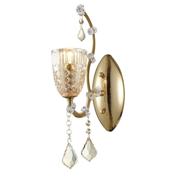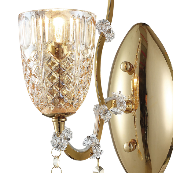 Корпус из металла золотого цвета.Чаши и подвески из хрусталя цвета золотого шампанского.