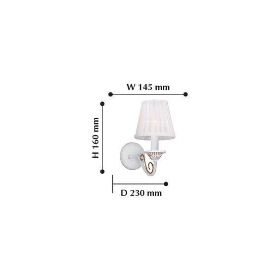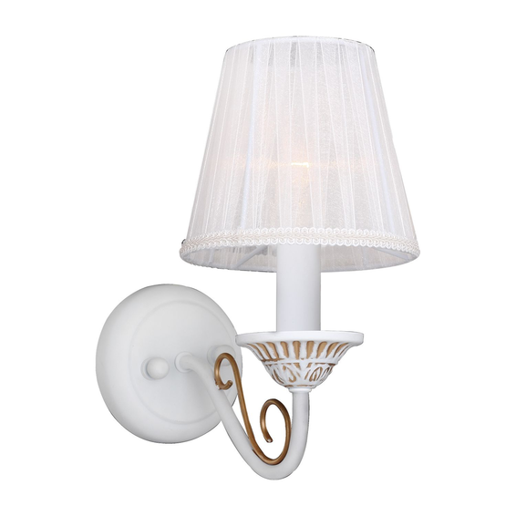 Каркас светильника из металла белого цвета с золочением декоративных элементов.Плафоны из органзы белого цвета.Изящные рожки дополнены витыми элементами.