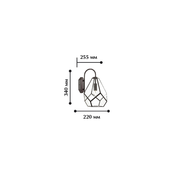 Арматура изготовлена из металла, окрашенного в черный цвет, плафон стеклянный прозрачный.