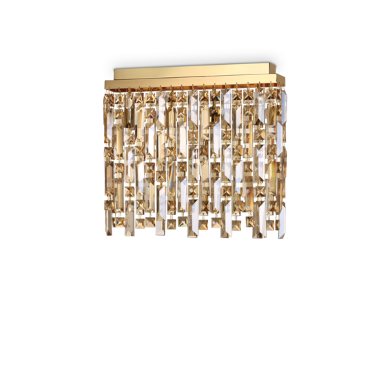 Арматура из металла. Декоративные треугольные элементы из прозрачного хрусталя с фацетом в хромированной версии и из янтаря в латунной версии.