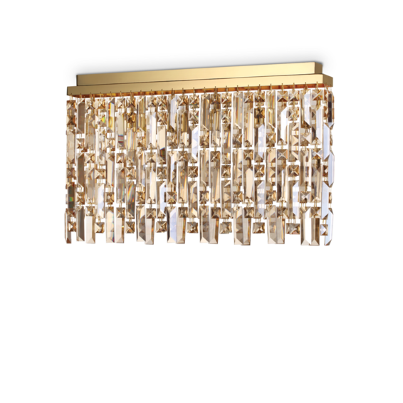 Арматура из металла. Декоративные треугольные элементы из прозрачного хрусталя с фацетом в хромированной версии и из янтаря в латунной версии.