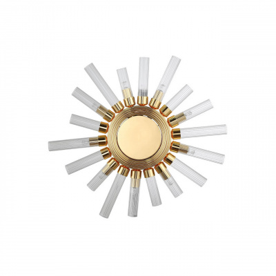 Каркас изготовлен из металла, окрашенного в золото, стеклянные матовые трубки прикреплены к основе в виде солнечных лучей.